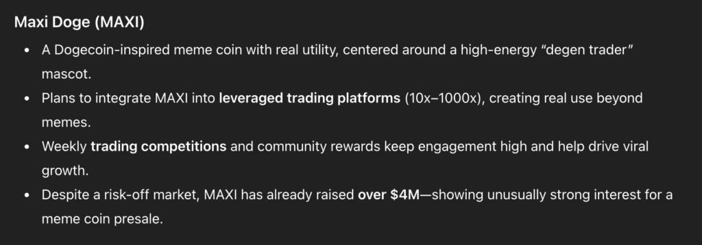 MAXI is one other mission bucking the development, with big inflows into its ongoing presale, the place it has raised over $4 million to this point. That is considerably of a shock on condition that each meme cash and leverage buying and selling are often risk-on sectors, however that solely strengthens MAXI’s bull case.